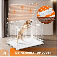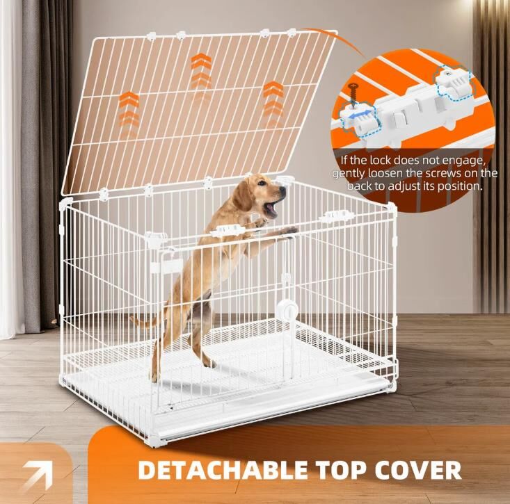 This durable and practical dog crate combines convenience and comfort for your pet. Made from high-quality metal, it’s built to last and resist deformation. With 3 cm bar spacing, it’s ideal for pets under 15kg, including dogs, cats, and other medium-sized animals, while maintaining a clean and modern look for your home. The drawer-style waste tray ensures hassle-free cleaning without disturbing your pet, and the sliding double doors with secure locks make it easy to access, especially for elderly or injured pets. Quick to assemble with snap-on connections, the crate also features a detachable top for better interaction with your furry friend.
