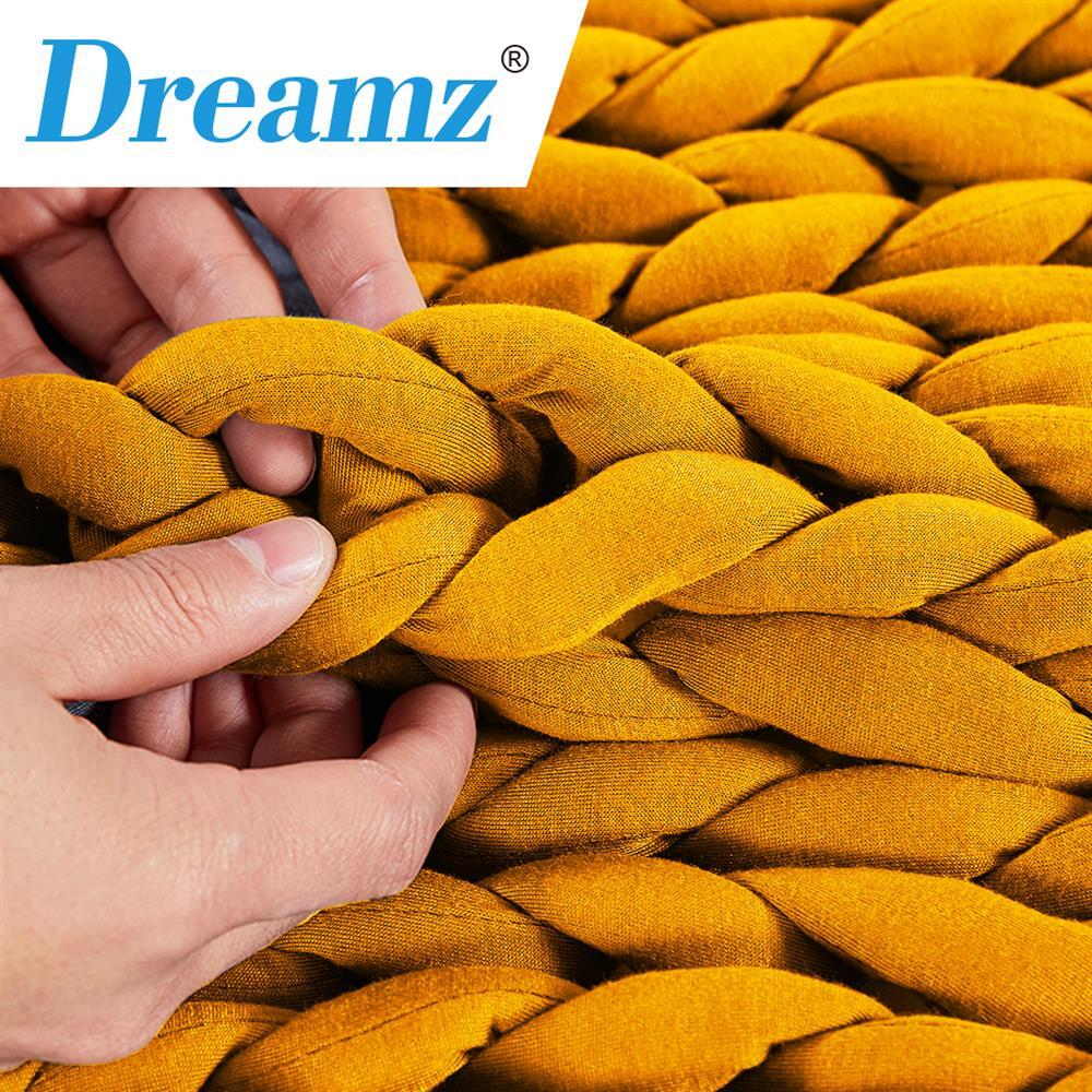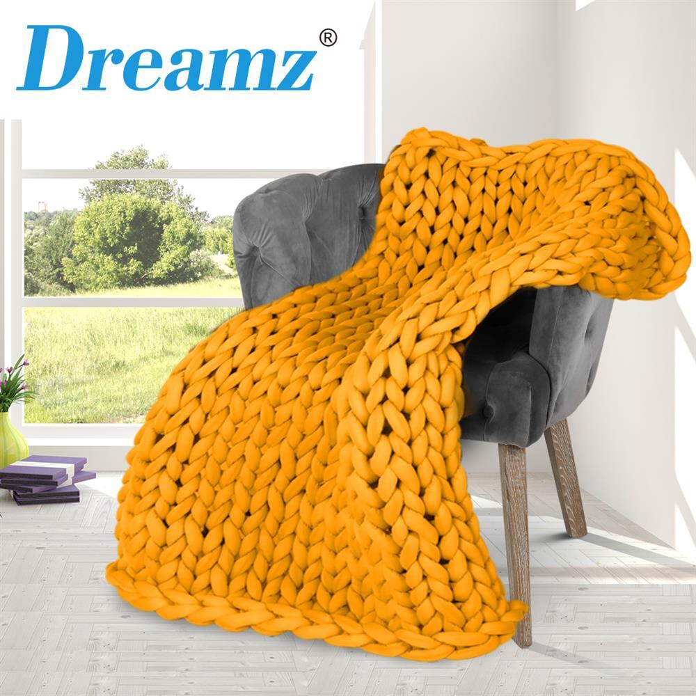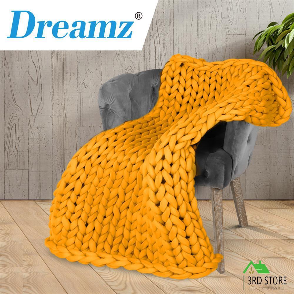 Dreamz Knitted Weighted Blanket Chunky Bulky Knit Throw Blanket 3KG Yellow