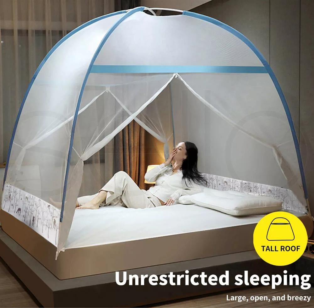 Open the zipper of your mosquito net for bed. Hop into your bed. Close up the zipper. Sleep safe from mosquitos bugs and any other insects. Wake up refreshed and without any mozzie bites.