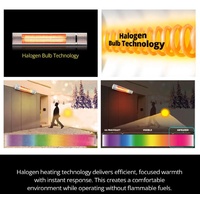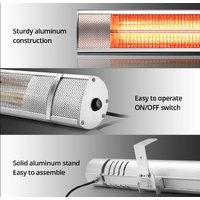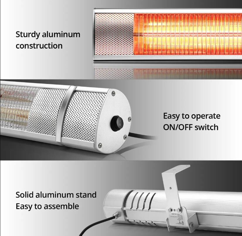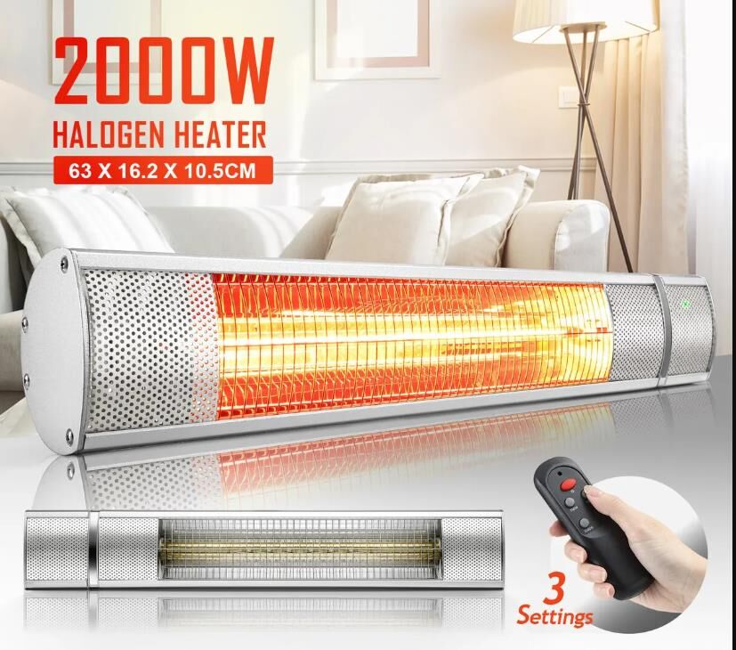 Heat your space safely and efficiently with our Electric Outdoor Heater Halogen Instant Heat Patio Room Bar Energy Saving Strip Heater. Featuring a powerful 2000W output, this space heater provides immediate heat in just seconds, thanks to its halogen tube and high-efficiency aluminium reflector. Tailor your comfort with three adjustable heat settings (750W, 1500W, 2000W) to suit any environment. User-friendly and efficient, it’s quick to assemble—just plug in and enjoy. Control it effortlessly with the included remote for hands-free convenience. With an IP65 waterproof rating, this electric heater withstands all weather conditions, making it ideal for versatile use in homes, patios, garages, or covered decks. Wall- or ceiling-mounted for seamless integration, it’s the perfect energy-efficient solution for keeping any space cosy and warm all year round.