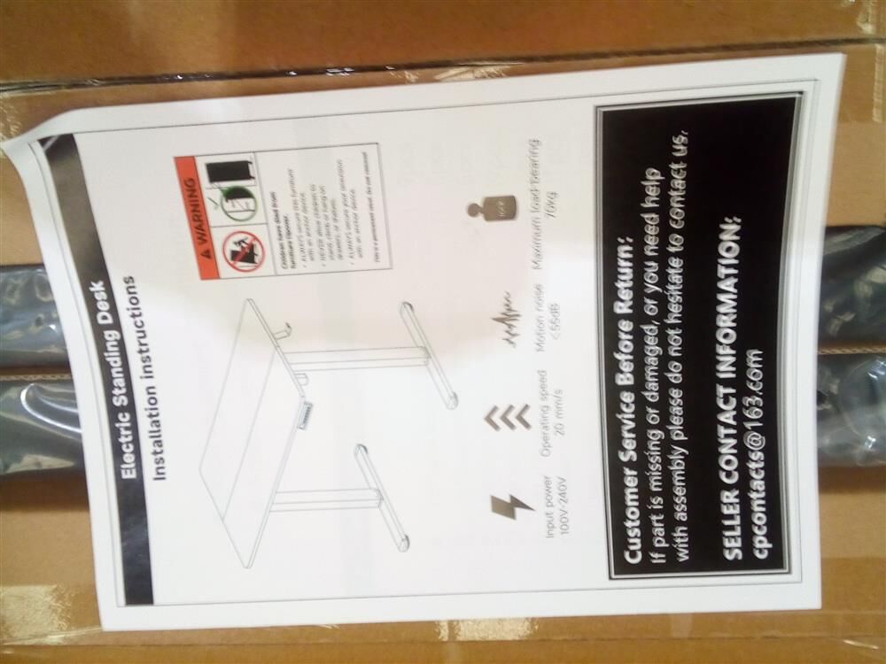 Packing Content: 1 x sit & stand desk, 1 x control panel, 1 x powder adapter, 1 x power cord, 1 x assembly manual