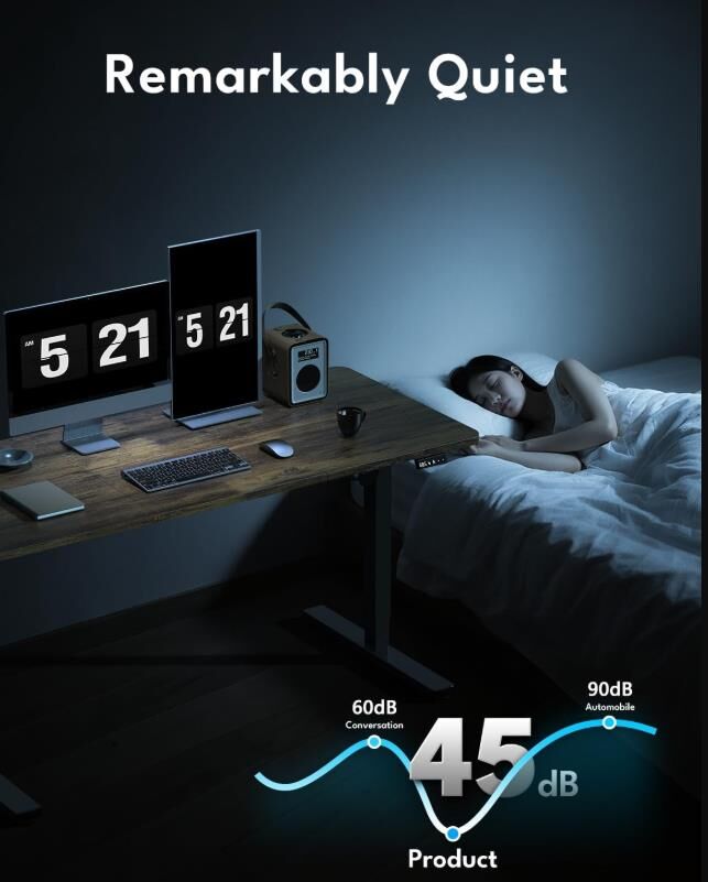 --【Built to Last with Exceptional Stability】The industrial-grade steel frame and T-shaped design of the stand up desk support up to 70 Kgs, ensuring stability and reliability for years to come. Paired with a durable motor, this home office desk is designed to meet the demands of your dynamic workday