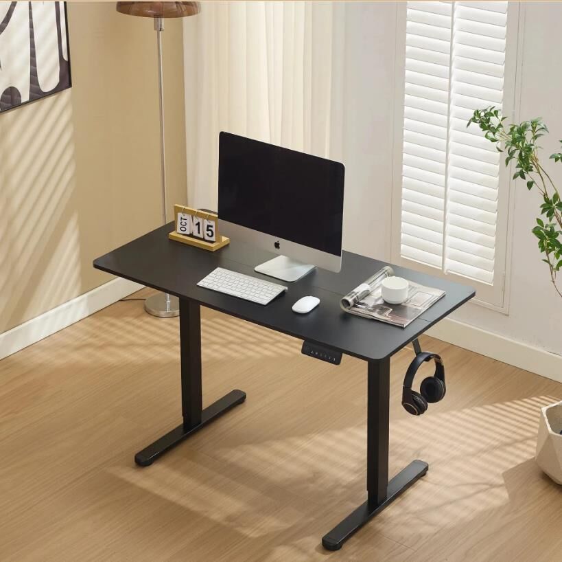 --【Deep-ended Desktop, Wide Workspace】With a 100 x 60 cm wide desktop made from durable and green materials, this electric standing desk adjustable height prioritizes your health and working hours. 1 hook on side of the standing computer desk offer added convenience, keeping your headphone or computer bags organized. Cable managers let you stay away from tangled wires.
