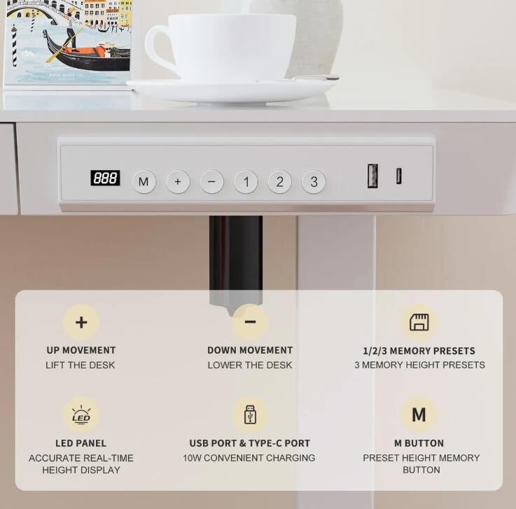 Electric Standing Desk Sit Stand Up Table Motorised Height Adjustable Rising WH