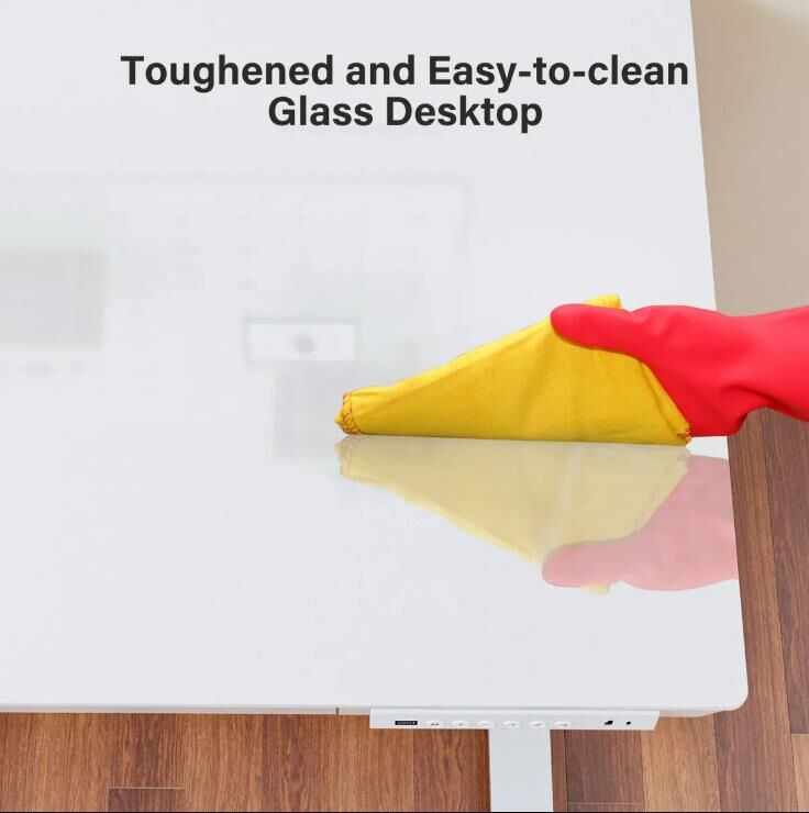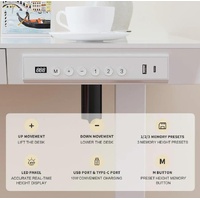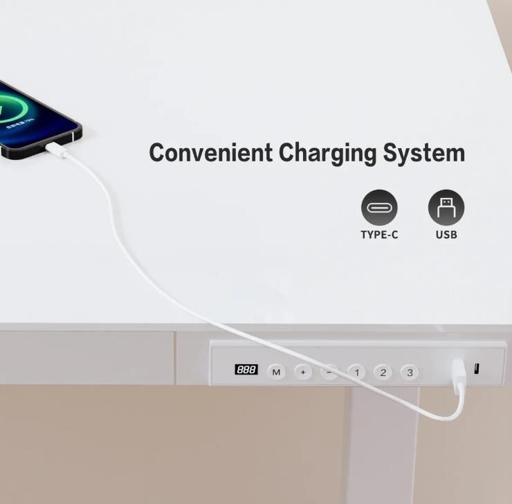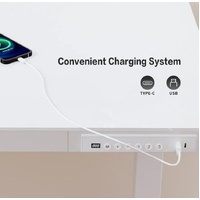 Relieve physical discomfort like leg numbness and body fatigue caused by prolonged sitting with this electric standing desk. This motorised sit stand desk enables you to adopt a healthier work routine by alternately sitting and standing, thus enhancing your focus and boosting your energy levels. Its adjustable height design allows for customisation to cater to your evolving needs and provides the opportunity to stretch your legs during the day. Featuring strong aluminium alloy and adorned with a tempered glass desktop, this computer table boasts excellent strength, stability, and durability. Stay connected and never run out of power with our integrated USB and Type-C charger. You can charge your phone, watch, and headphones easily. Its chic appearance seamlessly integrates with any style of home or office decor.