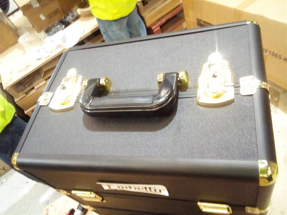 This is not an ordinary make up case. Made of aluminium casing matched with gold and black colour, it is an outstanding make up case that stood out in the crowd. To make it more outstanding, the edge protectors are fixed on with gold colour as well. Comes with adjustable dividers, you can customise the way you want your make up tools to be stored. And pop out with 4 sliding trays, you'll be able to see all the make up brushes, pallets and sponges that you need in one breeze. We know your make up tools are your life. This beauty case is lockable and comes with 2 keys for you. Whether a professional beautician or amateur nail tech, this stunning and stylish portable Make Up Cosmetic Beauty Case will have everything right beside you as you need it.
