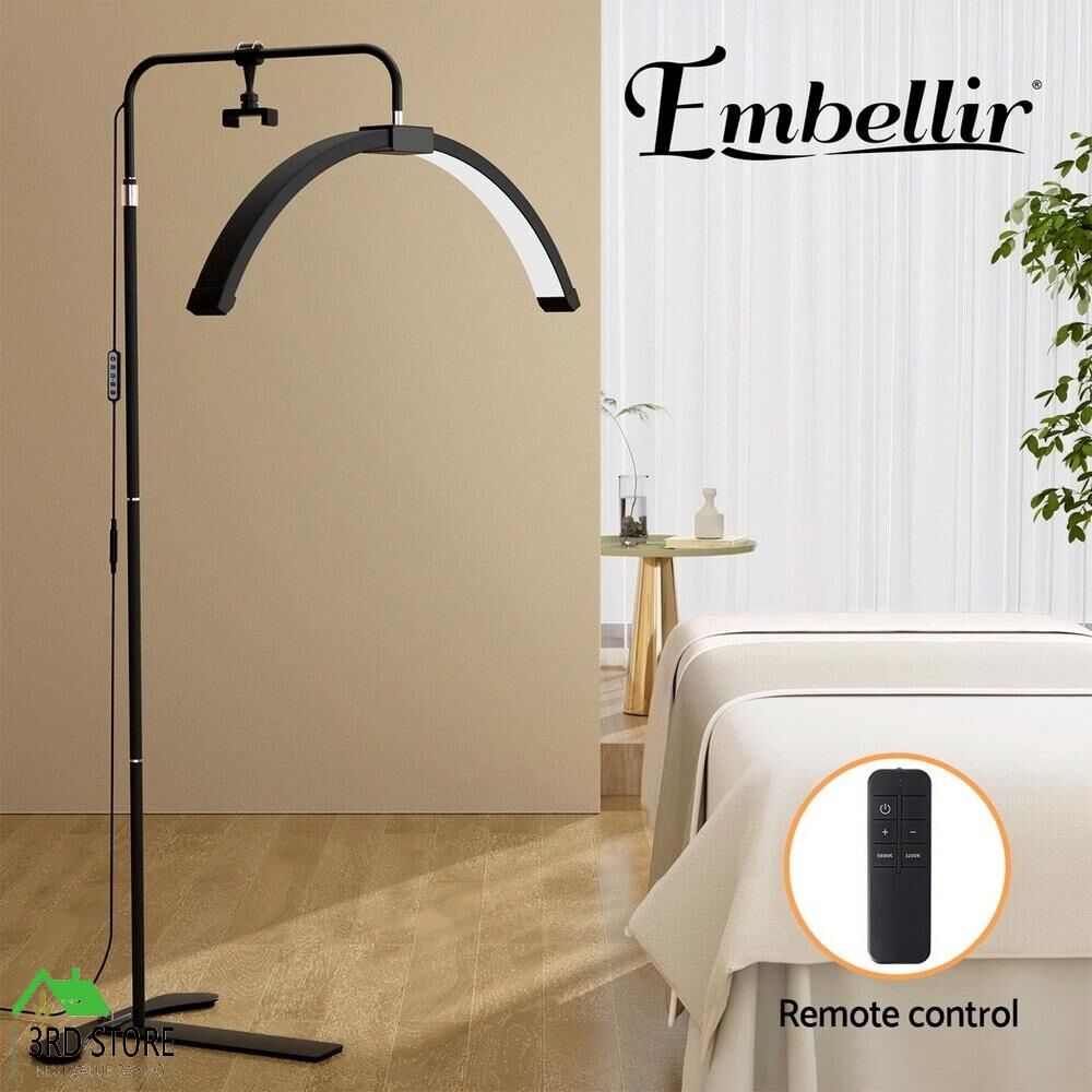 The Embellir Beauty Light LED Half Moon Lamp delivers professional-grade lighting for makeup application, lash extensions, and detailed beauty tasks. Its innovative half-moon design with 252 LED beads provides even, shadow-free illumination, while adjustable colour temperature (3000K-6000K) and brightness (10-100%) let you customize your lighting environment. Featuring flexible height adjustment (144-180cm), 360-degree rotation, and convenient remote control operation, this lightweight lamp is perfect for home salons and content creators. The included detachable phone holder adds versatility for recording tutorials or video calls.