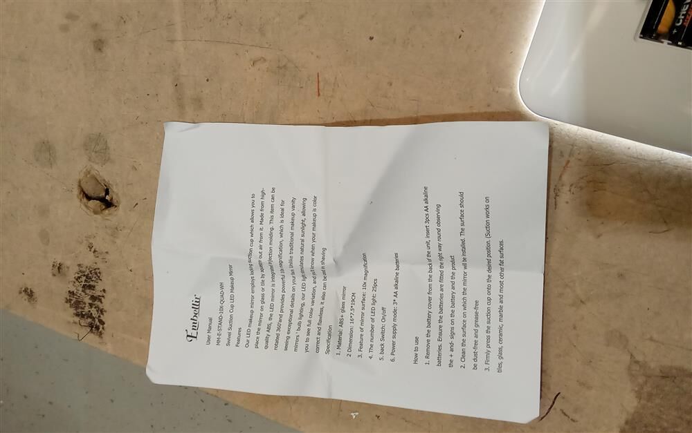 Designed for flexibility, the mirror rotates 360° to your preferred angle and is powered by rechargeable AA batteries (batteries not included), making it ideal for travel or bathroom use. Crafted from glass and lightweight PP plastic, its compact frame and 0.3kg weight ensure effortless portability. No assembly required—attach and go!