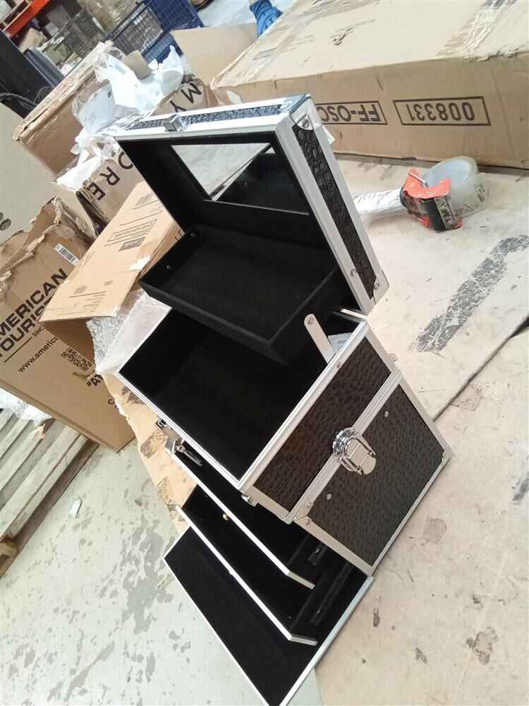 Need the perfect beauty case for the job? All you need is our stunning, stylish Make up case. Always on the go, but transporting the case will no longer be a burden. This beauty case appears to be big in size but its lightweight will make transporting a breeze. Wherever the job will be, no more hassle when on the go. This beauty case can be divided into 2 cases where larger items can be placed in the lower compartment. Whether its a job where you'll need all or few tools, you can easily divide and combine the 2 cases with the side locks. With plenty of storage space, it will make organising much easier. No matter the size or amount of tools required for the job, this beauty will provide all the space you need. Whether a professional beautician or amateur nail tech, this stunning, stylish Make up case will have everything right beside you as you need it!