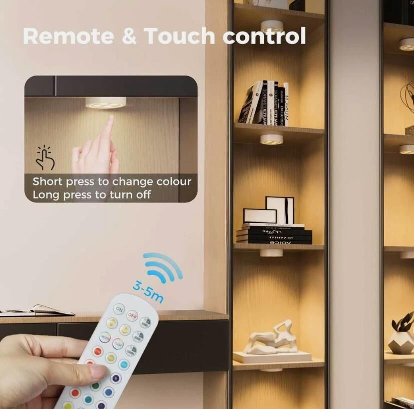 It uses advanced RGB LED light technology and has 15 stunning color options. Whether it is cozy warm tones or vibrant cool tones, you can freely match them to meet the needs of different moods and scenes. These led puck lights are perfect for any ambiance.