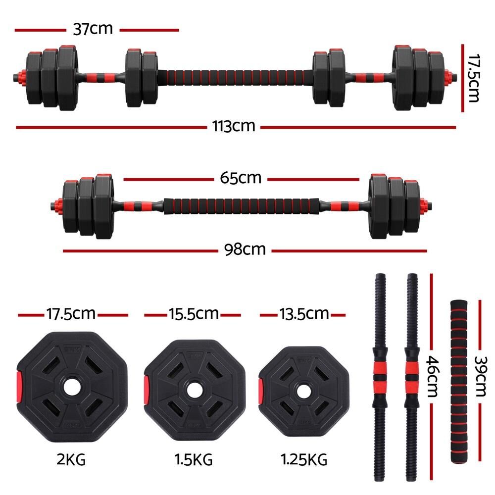The Everfit Dumbbell Set is a 4-in-1 adjustable barbell and dumbbell combo, offering versatile weight options in a compact design. Perfect for home gyms, this 20kg set includes durable weight plates and bars for strength training, cardio, and muscle toning. Ideal for fitness enthusiasts seeking a space-saving, all-in-one workout solution. (Safety Note: Never stack more than two weights near the Barbell Connector. The Barbell Connector is for connection only – not for load-bearing.)