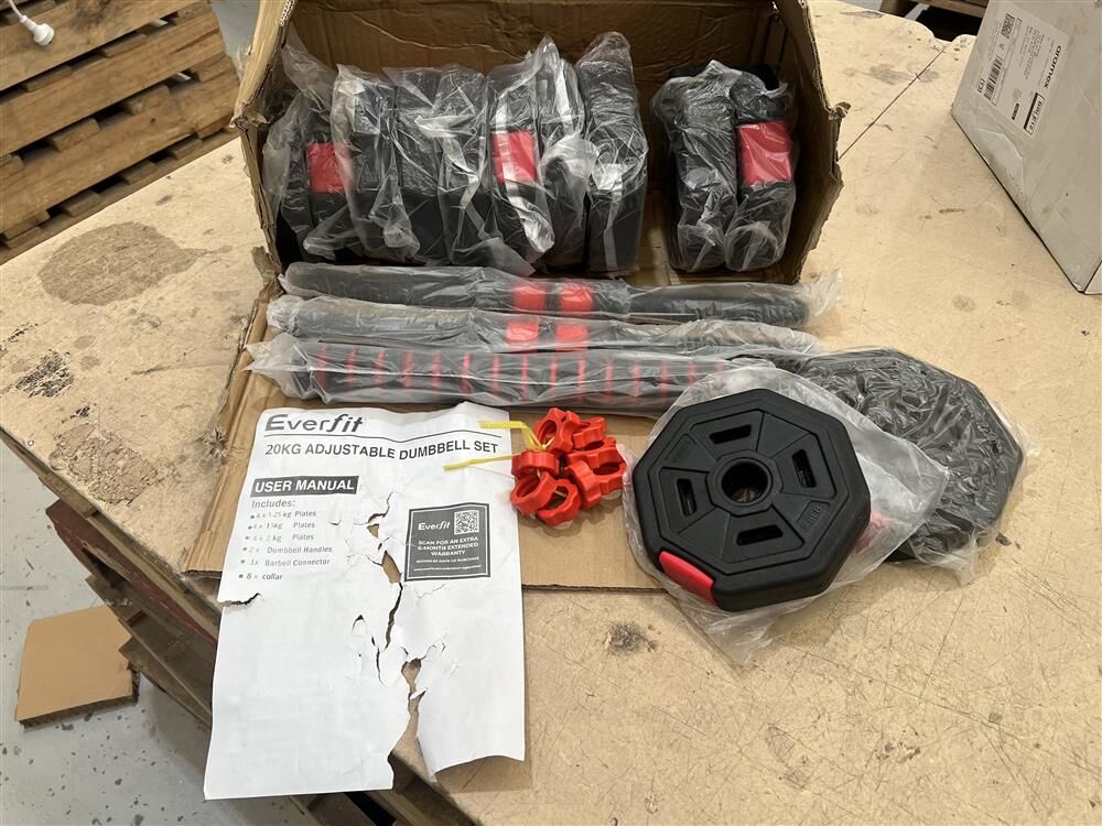 Everfit 20kg Adjustable Dumbbell Barbell Set Weight Plates Home Workout