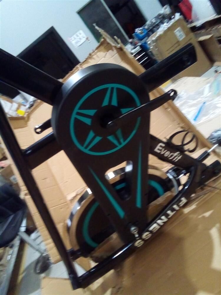 Unleash your fitness potential with our Everfit Spin Bike. It's engineered with a heavy flywheel for a smooth, realistic riding experience and variable resistance to challenge all fitness levels. The bike features a comfortable, adjustable seat and handlebars, and a digital monitor for tracking speed, time, calorie burn, and heart rate. Its compact size ensures easy storage. Perfect for high-intensity cardio, this bike brings the energy of a spin class right into your home.