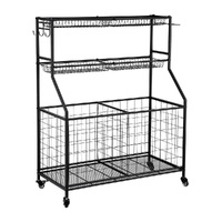 Organize all sports gear with the Everfit Sports Equipment Organizer featuring dedicated compartments for balls, rackets and accessories. The sturdy steel frame with 4 swivel wheels allows easy mobility between garage, gym or backyard. Includes ventilated baskets for airflow and adjustable hooks for equipment. Compact design fits tight spaces while holding up to 80kg. Ideal for basketball, soccer, tennis and more.