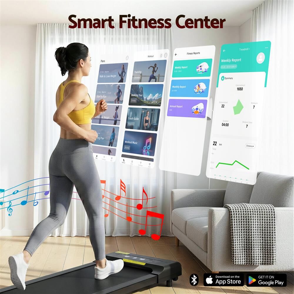 For a truly effective approach to weight loss and toning, our Everfit Walking Pad is your perfect companion. Compact and sturdy, the walking pad allows you to perform essential cardio exercises within the comfort of your home. It is foldable, easy to move, and comes ready to hit the ground running – no assembly required. Controlled by either the companion app or remote control, set up speeds of between 1km/h and 10km/h and monitor speed, time, distance and calories. Its powerful and energy-efficient motor produces smooth and seamless operation and the anti-slip belt phone holder makes your session a comfortable and controlled experience. The 400mm non-slip running belt uses an enhanced shock control system to help reduce the risk of joint injury, making the walking pad suitable for adults and seniors. When all the hard work is done, easily fold the compact walking pad and store away. Other great features include smooth wheels for easy mobility and Bluetooth speakers for entertainment while exercising. For health results that matter, our fitness walking pad is the one to run to.