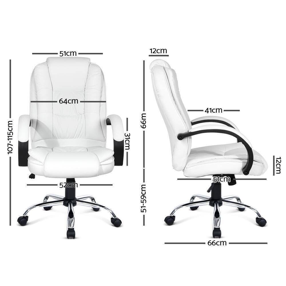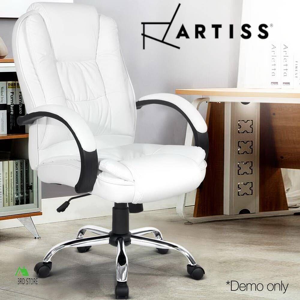Artiss Office Chair Computer Chairs Executive Premium Padded PU Leather White