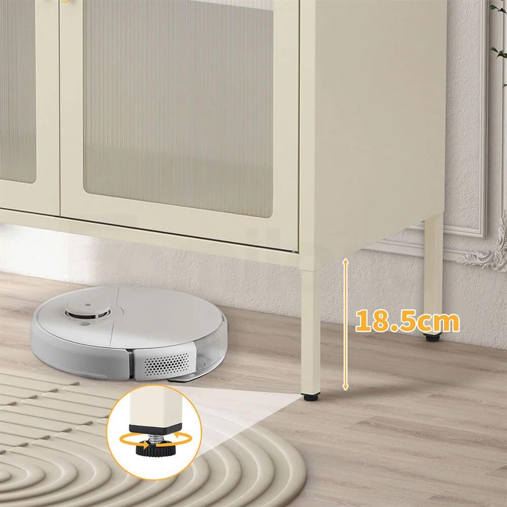 --【Practical & Safe Features】Equipped with adjustable feet, this accent storage cabinet remains stable on uneven surfaces, offering maximum adaptability. The raised cabinet legs allow for easy cleaning underneath, even accommodating robot vacuum cleaners. For added safety, the cabinet includes anti-tipping accessories, ensuring peace of mind.