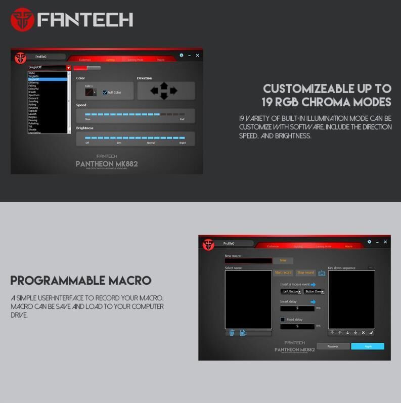 Qwerty (US) layout RGB illumination personalisation software Water and dust proof Detachable ergonomically designed wrist rest pad Anti-ghosting Convenient and practical multimedia shortcuts