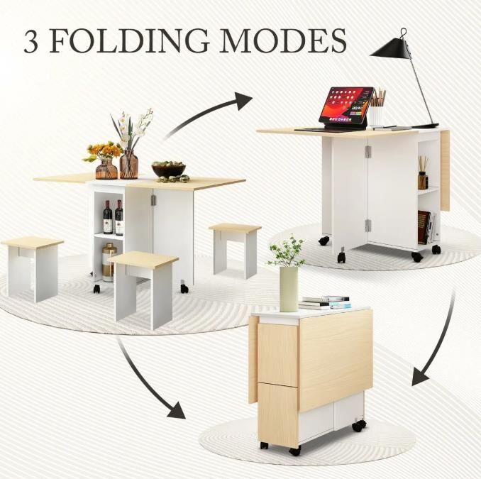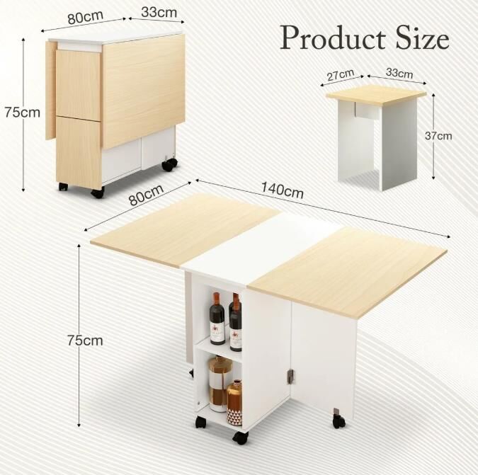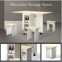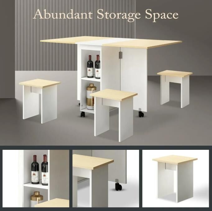 This 5pcs dining table and chairs set, combined with convenience, functionality, and style, will be the centrepiece of your home. Our folding dining table and four chairs allow for easy storage and free up valuable floor space when not in use. Constructed using sturdy and environmentally friendly materials of particleboard and MDF, the dining set is durable, stable, and easy to clean. Equipped with non-slip and 360-degree rotating wheels, the dining room table boasts easy mobility and manoeuvrability, so that you can effortlessly move the table around without scratching your floors. Whether you're planning a romantic dinner for two, enjoying daily meals with family or friends, or needing extra space for activities, our dining furniture is the perfect solution. In addition to indoor use, this table set is also suitable for outdoor use, making it perfect for camping trips, picnics, barbeques, etc.