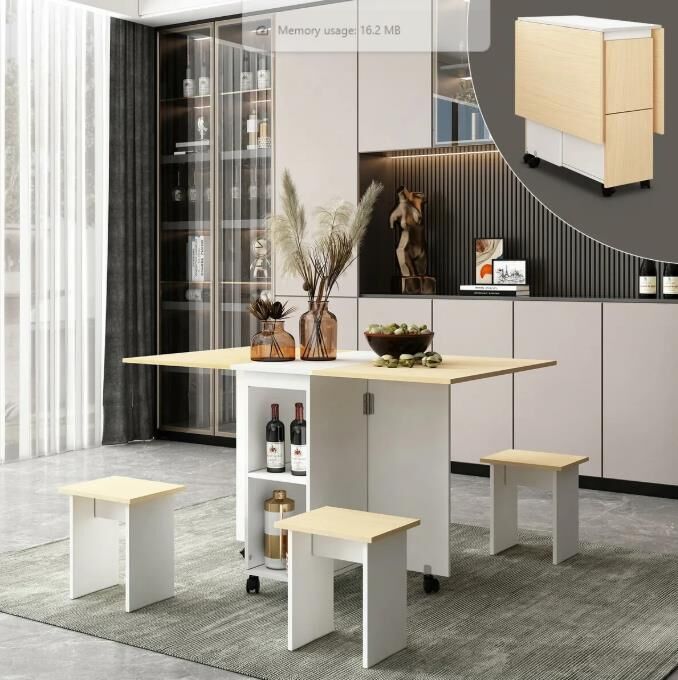 Folding Dining Table Set 4 Chairs Extendable Outdoor Home Furniture with Wheels