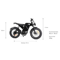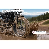 - Fat 20” x 4” tyres. Stability, comfort and grip across dirt, sand or city streets.