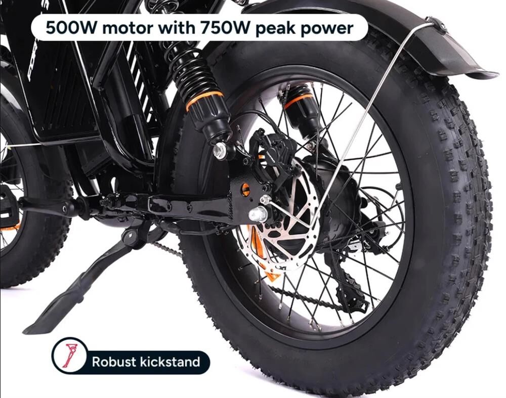 With a 500W brushless motor delivering up to 750W peak output, this e-bike powers through hills and rough terrain with ease. It gives you the acceleration and torque you need without compromising on efficiency or smoothness.