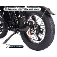 - 500W brushless motor with 750W peak power. Smooth acceleration and enough grunt for hills and off-road.