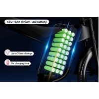 The 48V 13Ah lithium battery gives you up to 70km of range on a single charge, making it perfect for commuting, weekend adventures or daily errands. Enjoy the freedom of longer rides without constantly worrying about recharging.