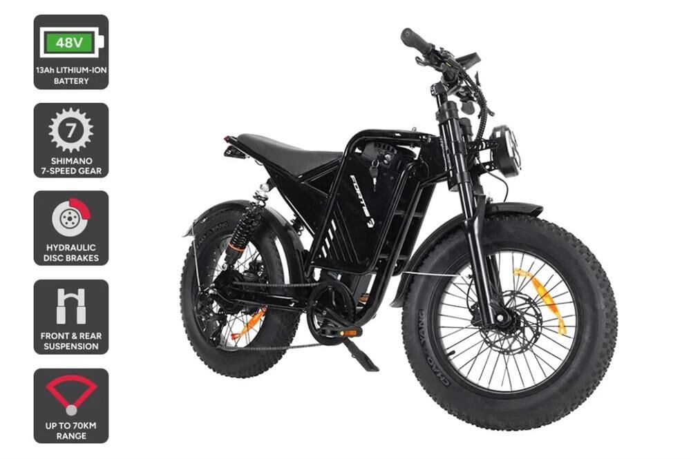 Conquer any road with the Fortis™ FatBro Plus 48V 13Ah Fat Tyre Electric Bike. With a powerful motor, fat tyres and full suspension, this e-bike is built for smooth, stable rides whether you’re cruising city streets or taking on rugged trails.