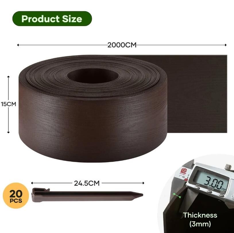 - 20m x 15cm Landscape Edging: This landscape edging offers a total length of 20 meters, with a height of 15 cm. It creates a clear grass line above ground and acts as a barrier to block roots beneath.