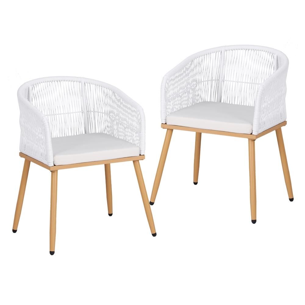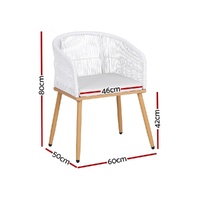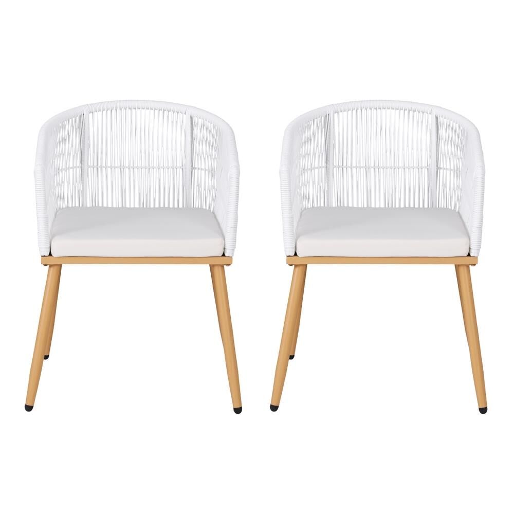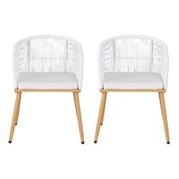 Gardeon 2PC Outdoor Dining Chairs Wicker Chair Patio Furniture Garden Steel White