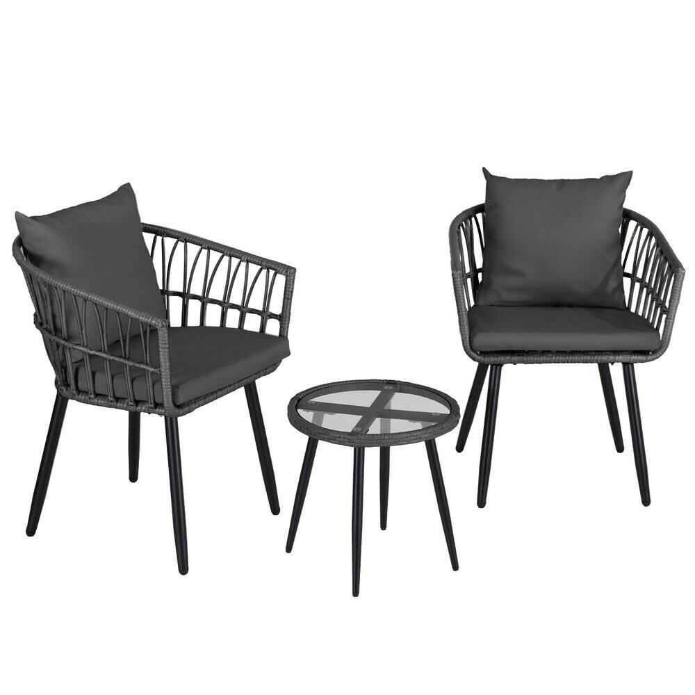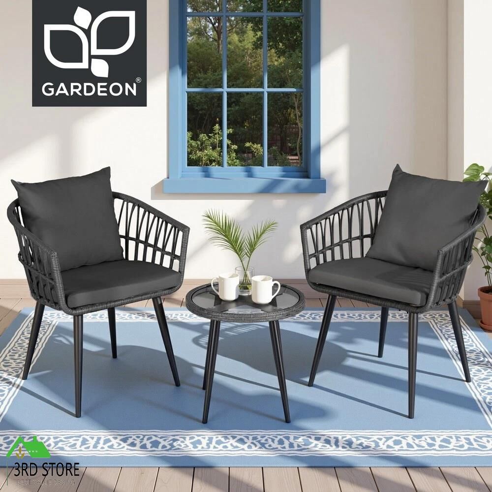 Gardeon 3PC Outdoor Bistro Set Patio Furniture Lounge Setting Table and Chairs Grey