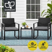 Gardeon 3PC Outdoor Bistro Set Patio Furniture Wicker Dining Chairs Table Cushion Black