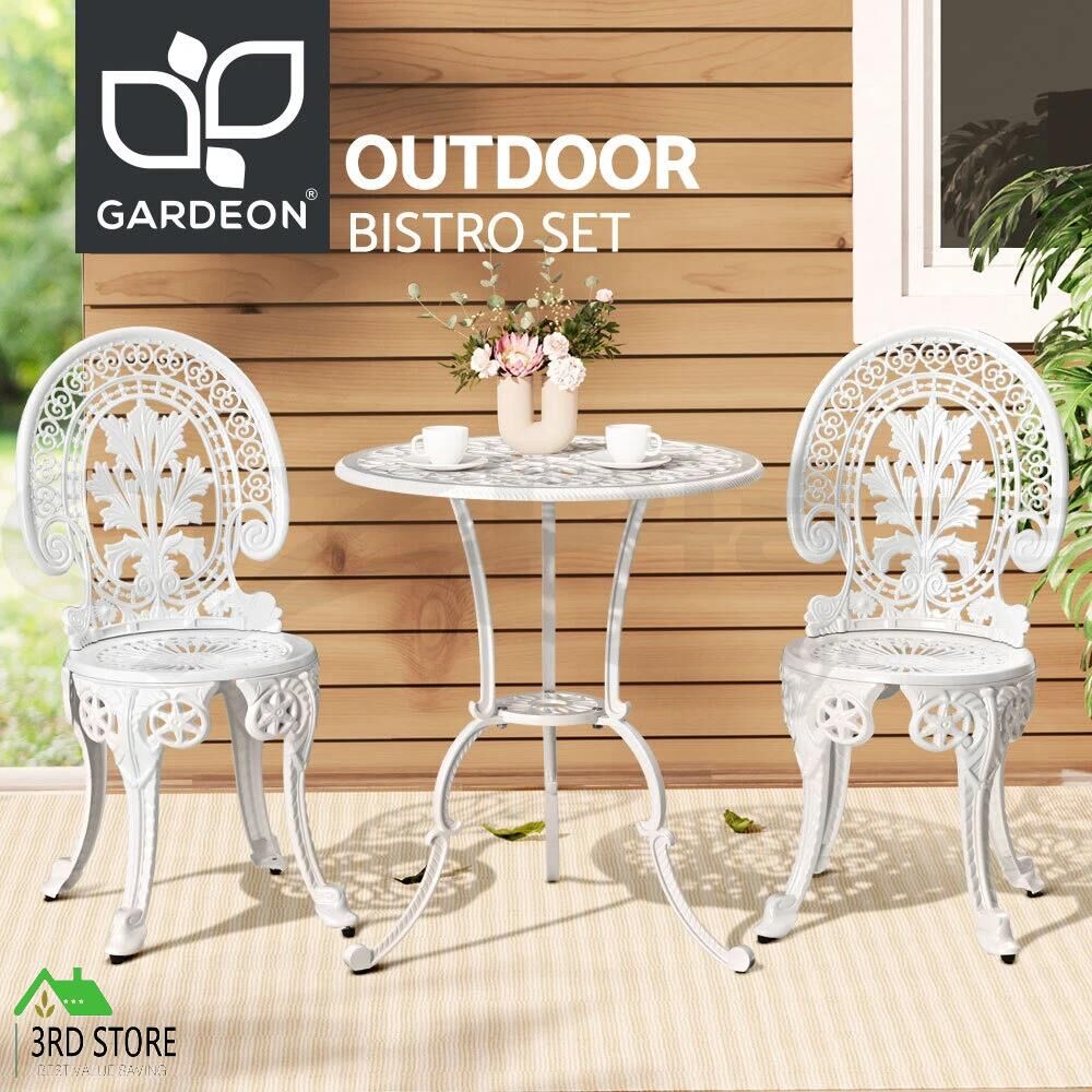 Gardeon 3PC Patio Furniture Outdoor Bistro Set Dining Chairs Aluminium White