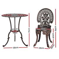 Gardeon 3PC Patio Furniture Outdoor Bistro Set Dining Chairs Aluminium Bronze