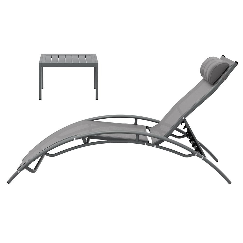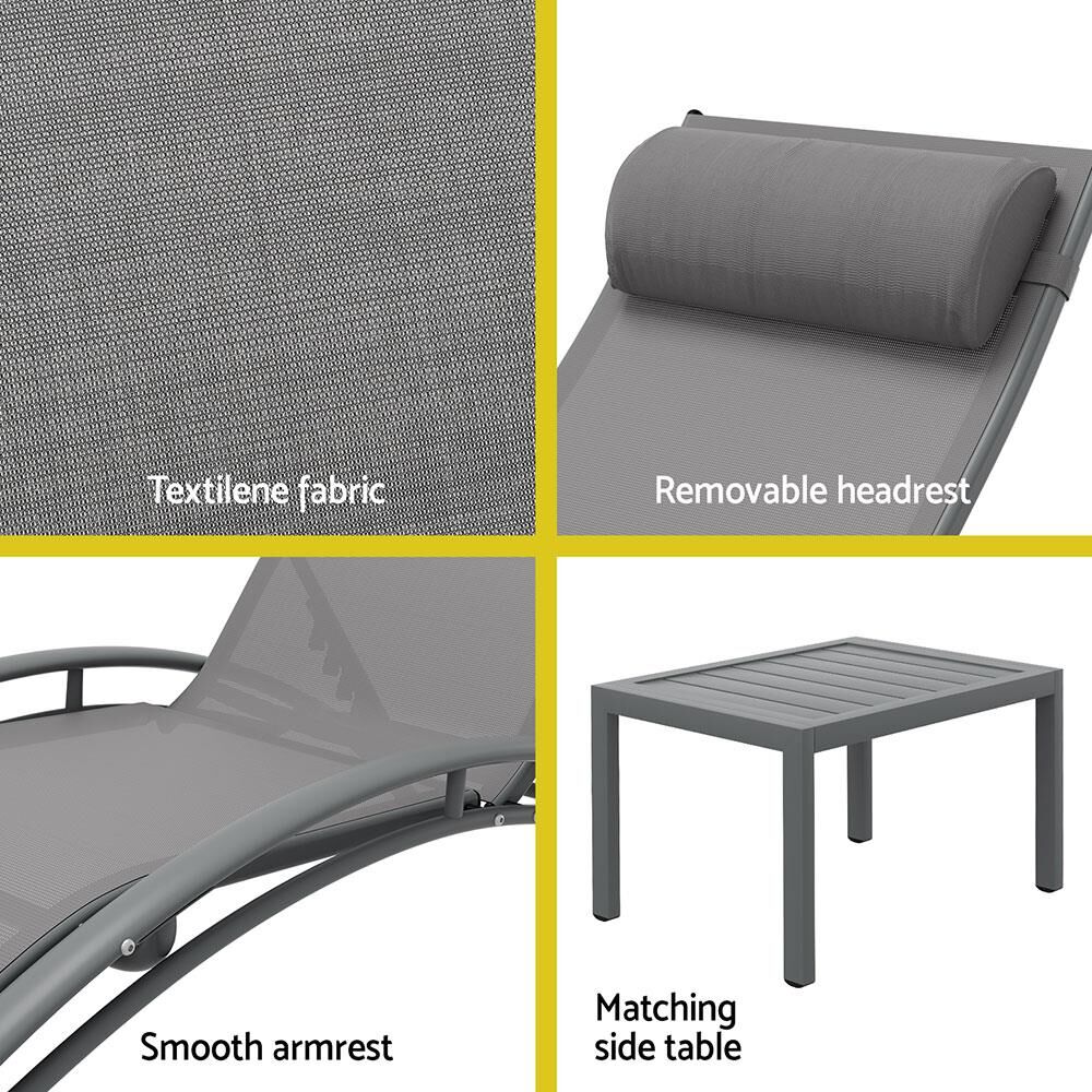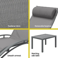 Gardeon 3PC Sun Lounge Outdoor Lounger Steel Table Chairs Patio Furniture Grey