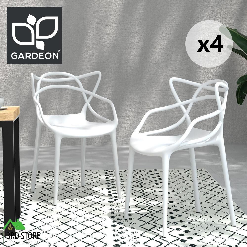 Gardeon 4PC Outdoor Dining Chairs PP Portable Stackable Chair Patio Furniture White