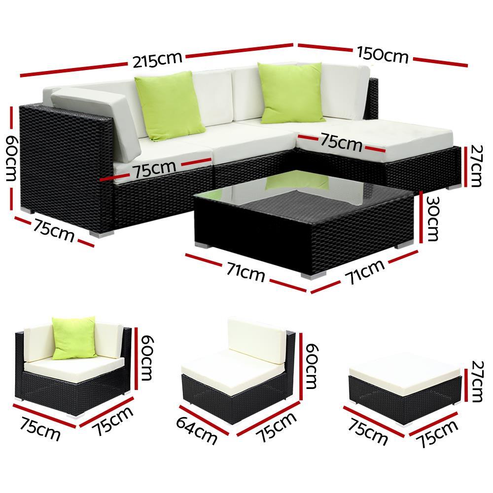 Gardeon 5pc Outdoor Furniture Sofa Set Lounge Setting Wicker Rattan Couch Garden