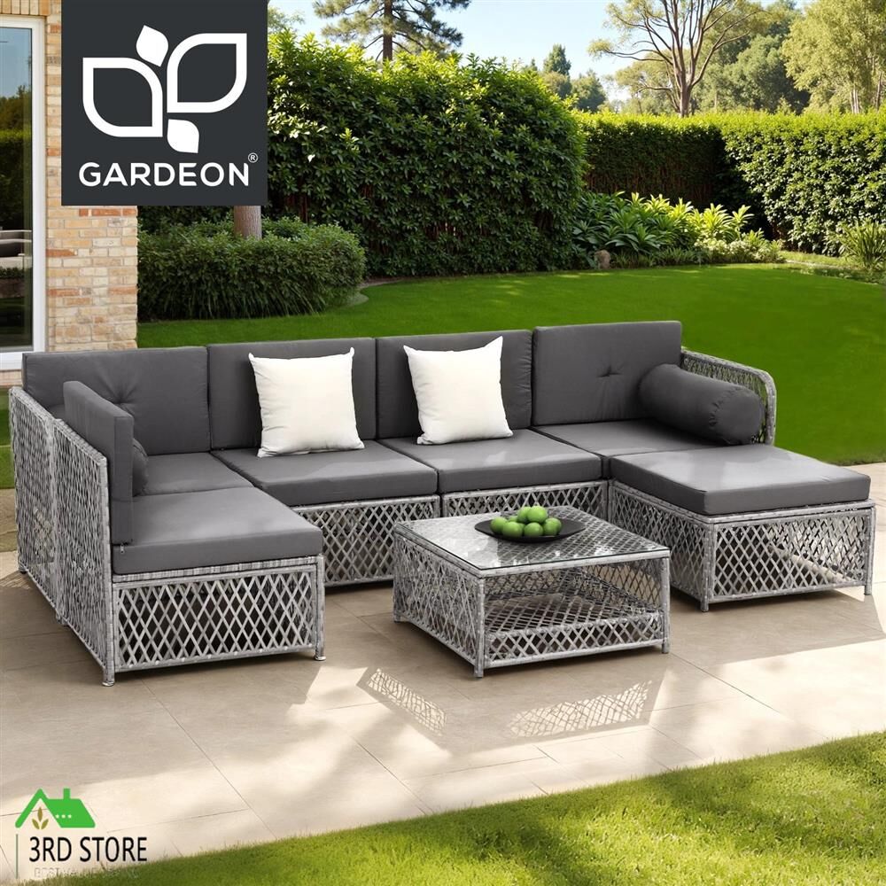 Gardeon 6 Seater Outdoor Sofa Set 7PCS Table Chair Set Garden Rattan Patio Furniture
