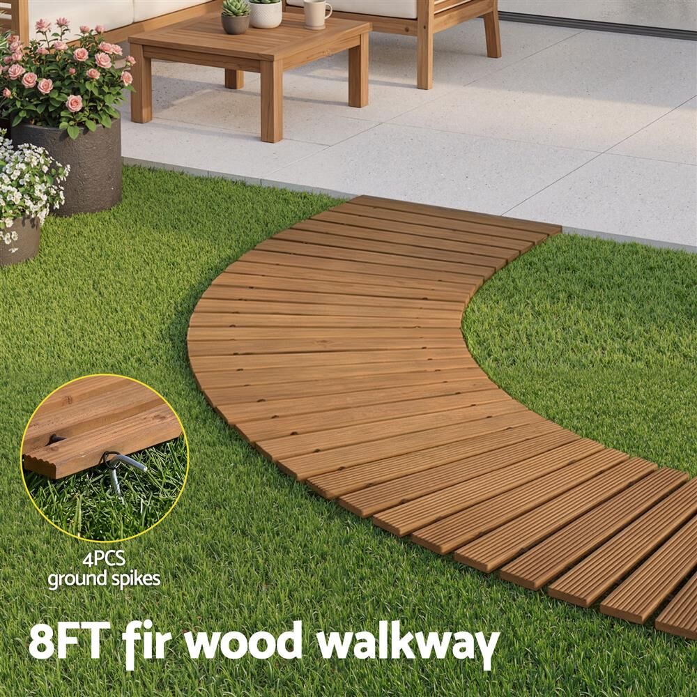 Gardeon 8FT Wooden Garden Pathway Roll-Out Curved Walkway Outdoor Backyard Brown