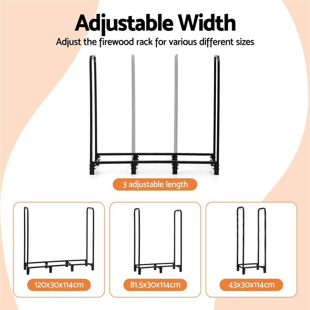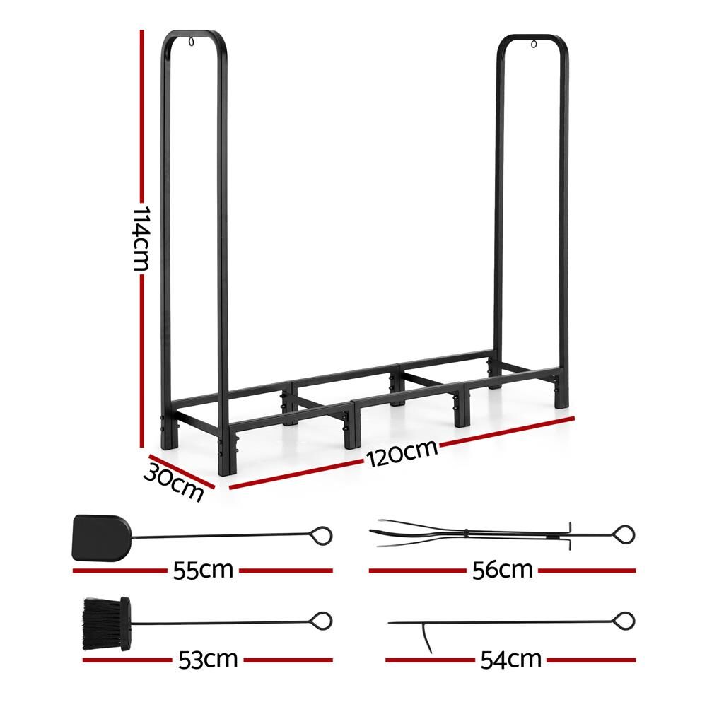 Gardeon Firewood Rack 120cm Wood Rack 3 Sizes Firewood Storage with Tools Black