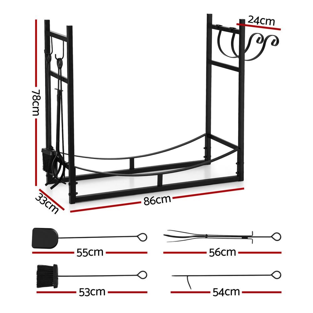 The Gardeon Firewood Rack keeps logs dry and organized with its heavy-duty frame and elevated design. Features weather-resistant coating for outdoor durability, 180kg capacity, and includes poker, brush, tongs & shovel. The rack promotes airflow to prevent rot while keeping your space tidy. Ideal for fireplaces, patios or garages.