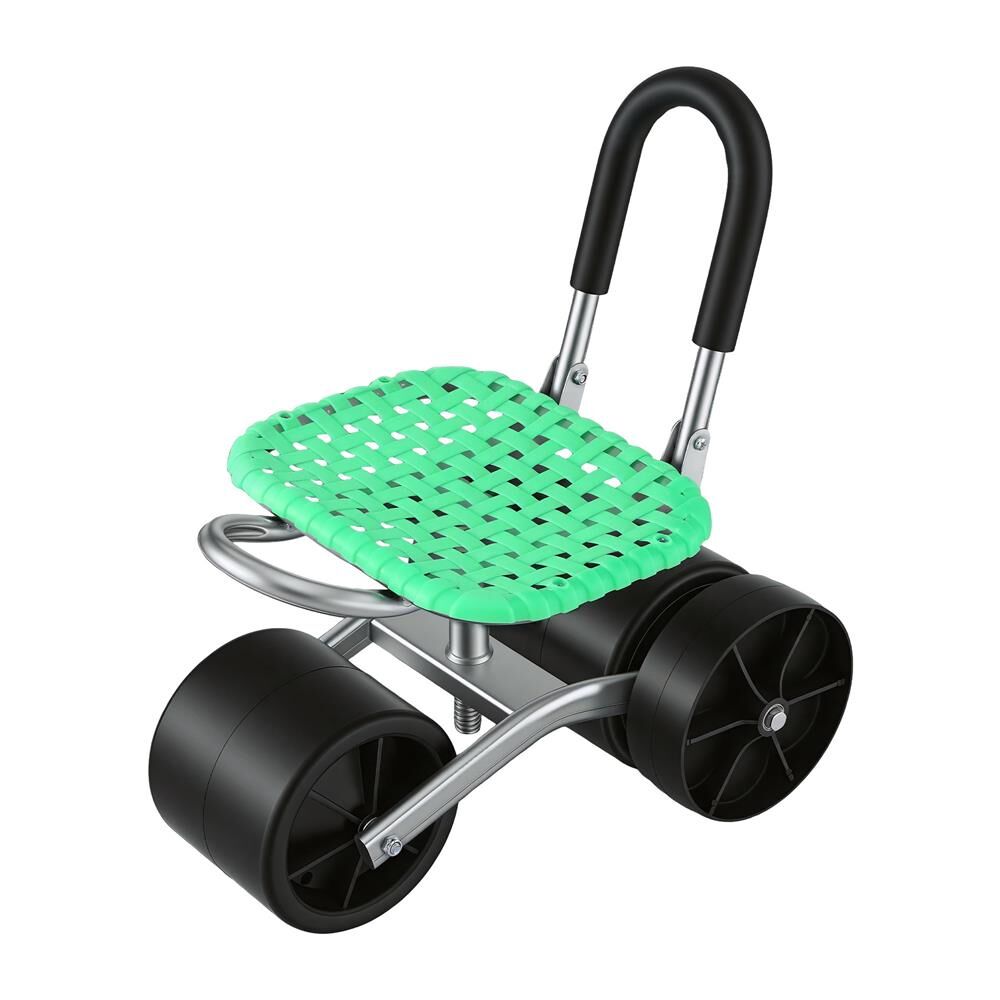 Featuring a 360° swivel seat and adjustable height (47cm-55cm), you can effortlessly reach any direction without ever having to stand up or twist uncomfortably. The heavy-duty steel frame supports up to 130kg, while the all-terrain rugged wheels glide smoothly over grass, dirt, and gravel, ensuring maximum stability in every corner of your backyard.