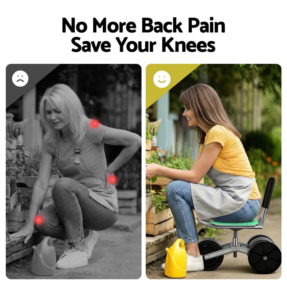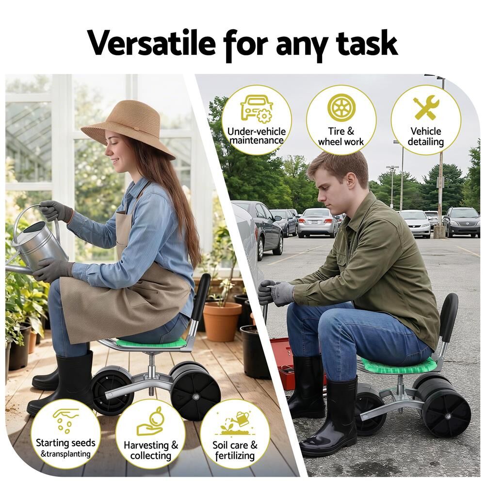 Say goodbye to the physical strain of gardening with the Gardeon Rolling Garden Work Seat. Specially designed to eliminate back pain and knee stress, this ergonomic cart lets you work from a comfortable seated position whether you're planting seedlings, harvesting veggies, or detailing your car.