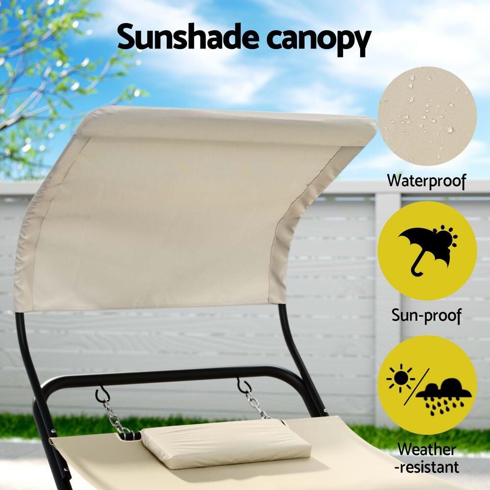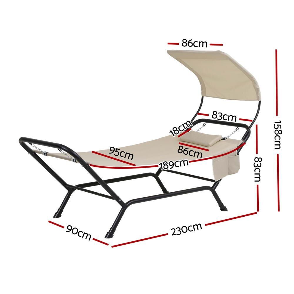 Gardeon Hammock Bed w/ Stand Outdoor Sun Lounge Chair w/ Canopy Chaise Beige