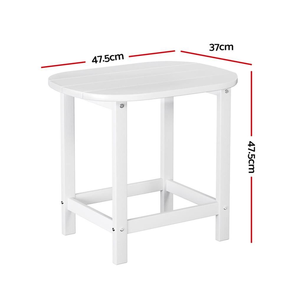 Upgrade your space with Gardeon durable HDPE side table! Weatherproof and fade-resistant, it withstands outdoor conditions without cracking. Features 91kg load capacity, water-draining slats, and safety-curved edges. At 47.5cm height, it perfectly complements Adirondack chairs (sold separately). Zero maintenance��just wipe clean. Ideal for patios, gardens, or indoor use. Quick 3-step assembly with included stainless steel screws.