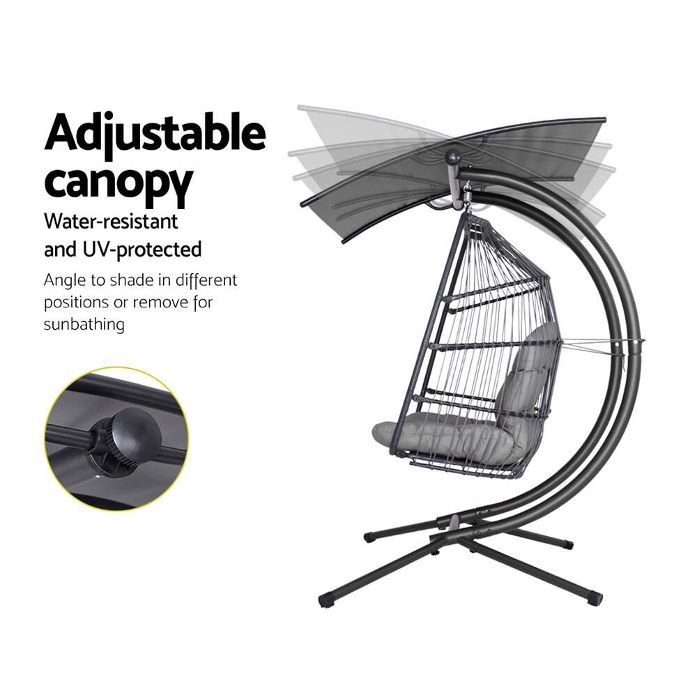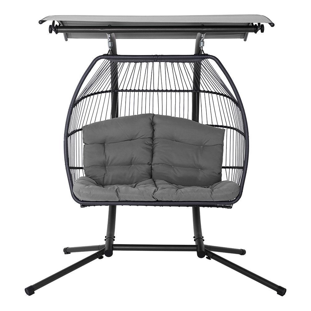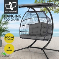Otherwise known as the hanging egg chair, our Gardeon Double Hanging Pod Chair is the epitome of ultimate relaxation with a cool and exotic vibe. With its 100% hand-woven UV-resistant resin wicker, the pod chair is beautifully handcrafted and well hung on a steel pole for stability and strength. Plus, the adjustable canopy can be angled to suit your shading or completely removed for a wondrous tan. The powder-coated steel frame finish ensures that corrosion will never be an issue while the soft, fully-padded cushioned seat offers plush comfort for day dreamers and leisure seekers alike. Best of all, it seats two and has ample space for relaxation with a weight capacity of up to 200kg. Sit back with your loved one and turn an ordinary day into an extraordinary one. Hang cool people!