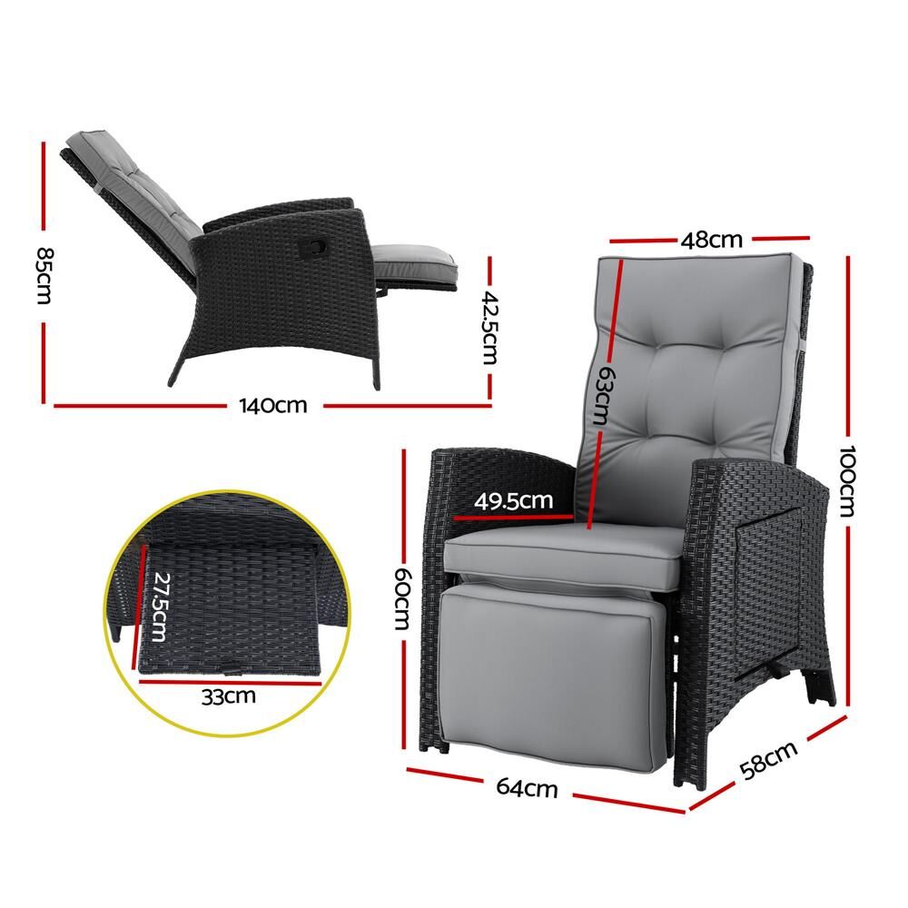 Gardeon Outdoor Recliner Chairs Sun lounge Wicker Lounger Patio Furniture Adjustable Black