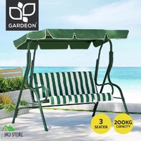 Gardeon Outdoor Swing Chair Garden Bench Furniture Canopy 3 Seater White Green
