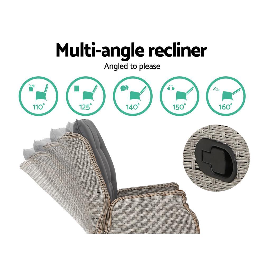 Gardeon Recliner Chair Sun lounge Outdoor Setting Patio Furniture Wicker Sofa